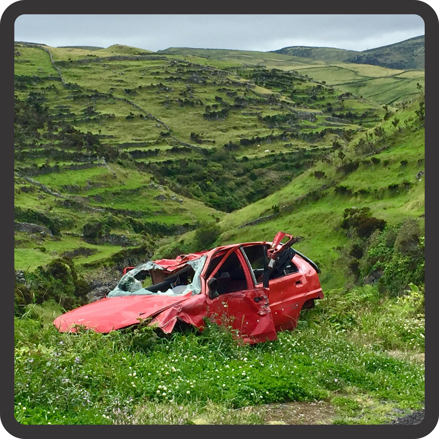 As our car spun off the road, all I remember were the high pitched screams of the women in the back seat…